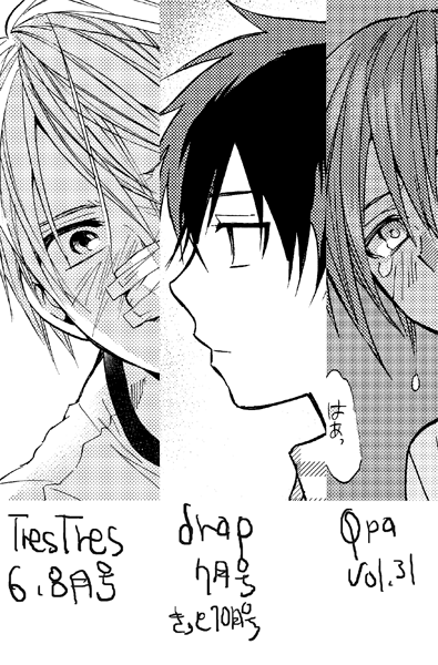 あと今年の最初の方から商業BLをちょこちょこ描いてて、なんかものすごく軽い気持ちで描いちゃってたんだけどこないだ自分の漫画が雑誌に載ったの見て、下手すぎだしコマ割り下手で話適当すぎて急に恥ずかしくなって反省したから次からは真面目にやろうと誓った。
