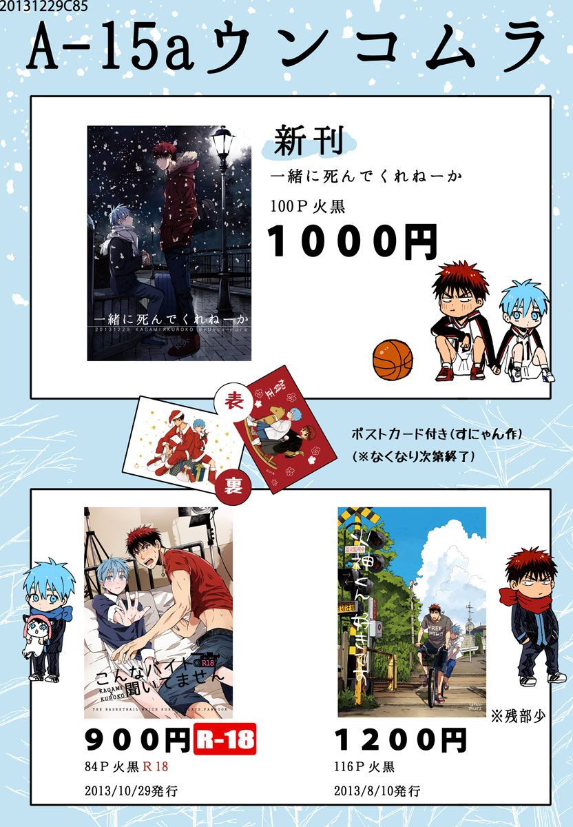 今回の新刊がクッソくだらない内容であんまり当日まで気にしてなかったんだけど、イベントで「火神くん好きですが良かったですー」って言ってもらってなんかお菓子ももらっちゃって段々イベント中に「自分はなんてくだらない本を…みんな間違えて買っていってしまってる…」ってスーパー懺悔タイム入って今も現在進行形で懺悔してます。すみませんでした!!!!!!!!!!!!!!!!!!!!!!